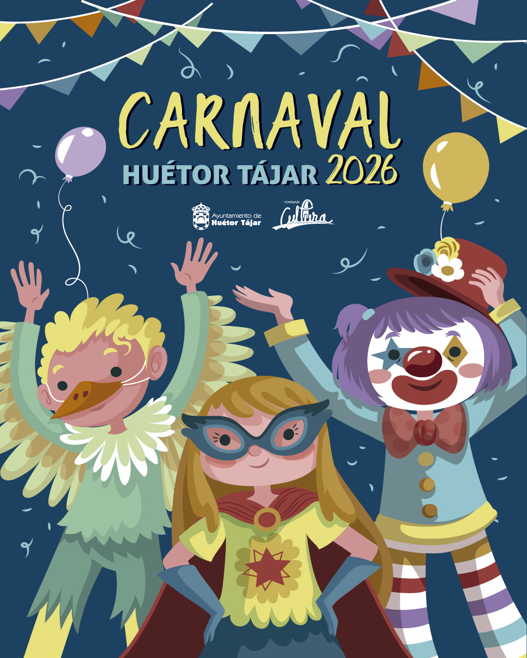 Huétor Tájar se prepara para vivir unos meses llenos de fiesta, cultura y diversión. Con la llegada del Carnaval 2026, nuestro municipio se llenará de color, música y tradición, dando el pistoletazo de salida a la programación de actividades que se extenderá durante los meses de febrero, marzo y abril.