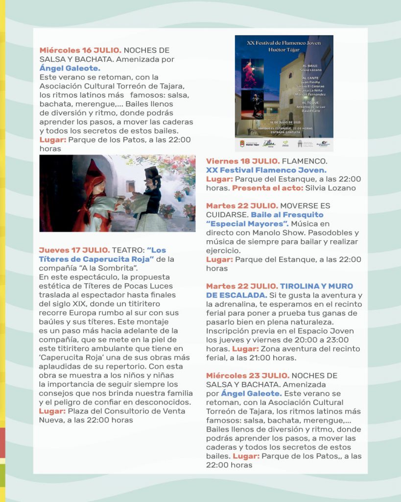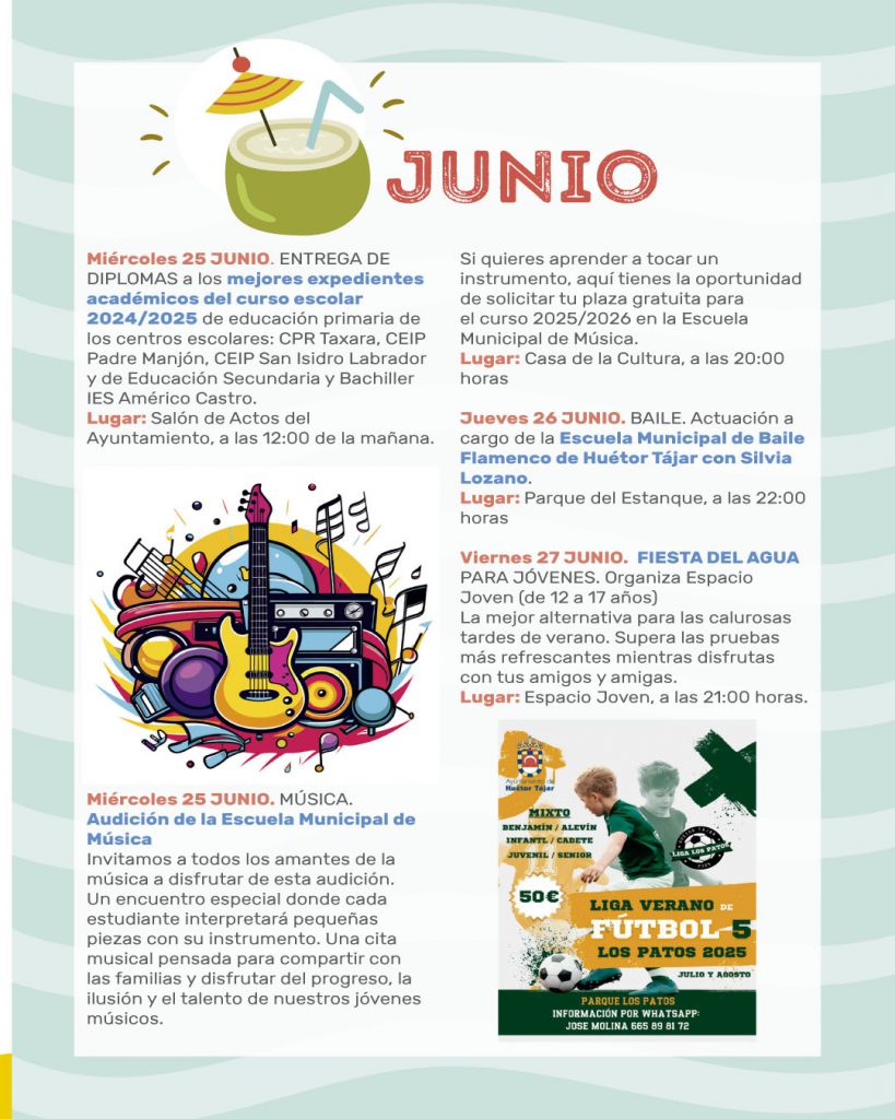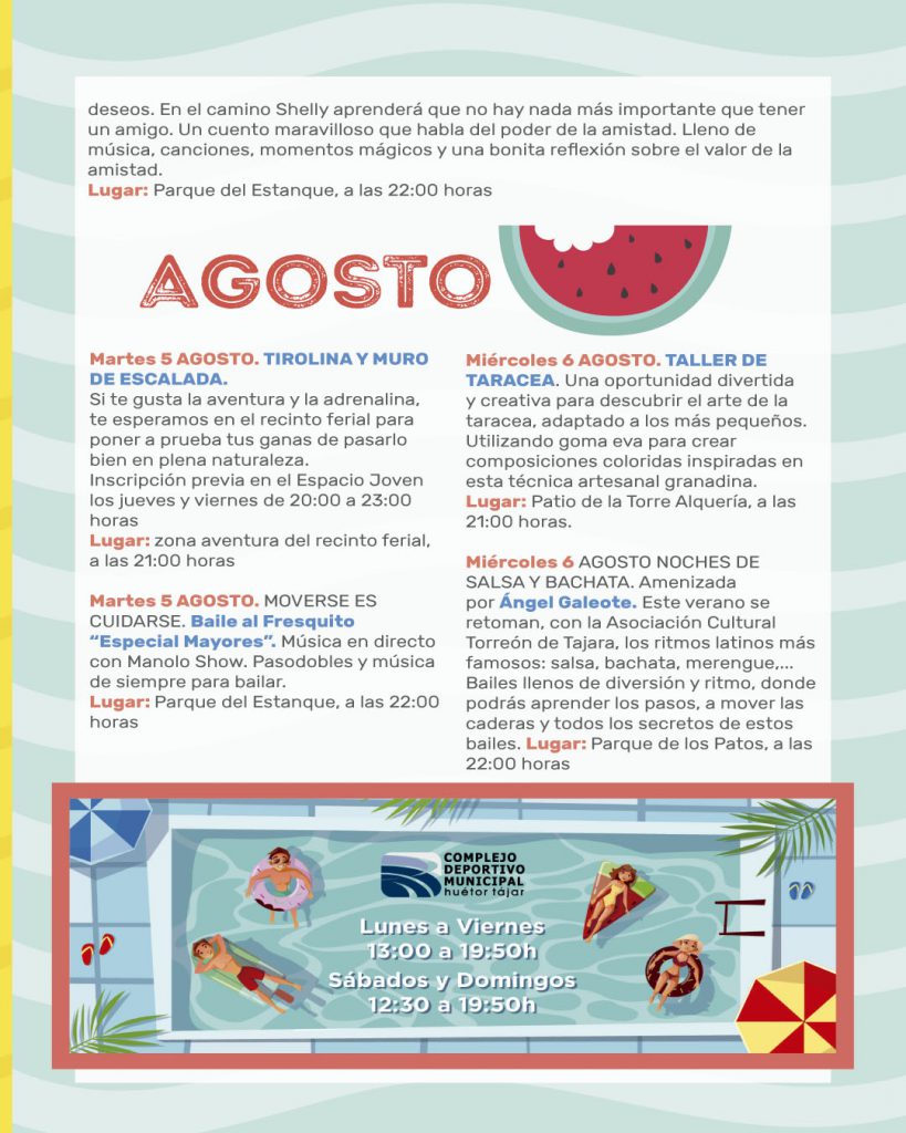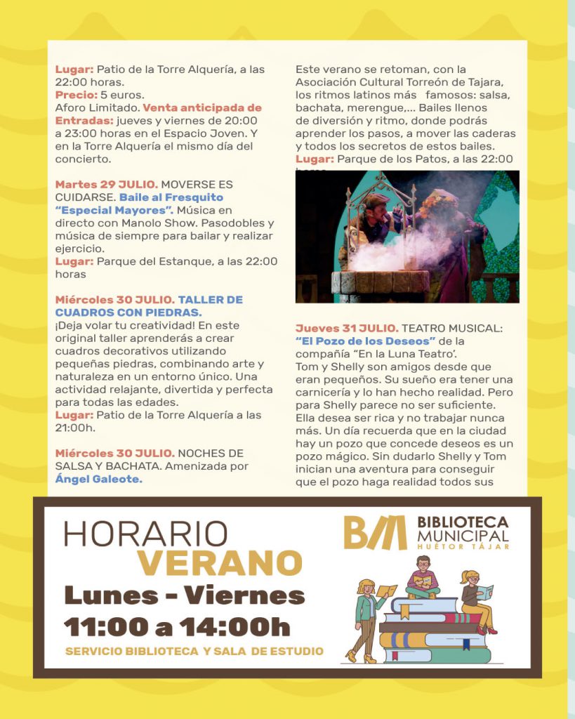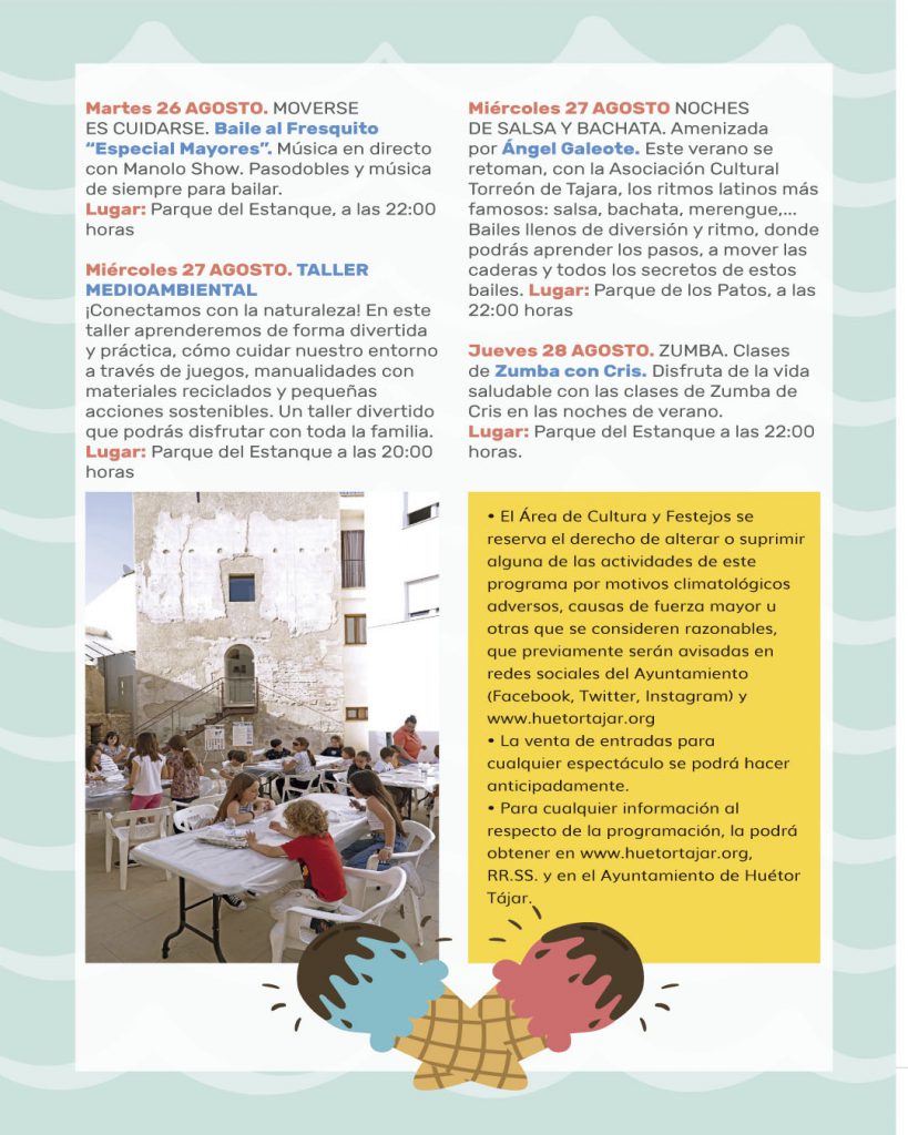Un verano más llega la programación de Verano al Fresquito. Pensada para hacer disfrutar a tod@s l@s hueteñ@s y visitantes que elijan pasar sus vacaciones en nuestro pueblo.